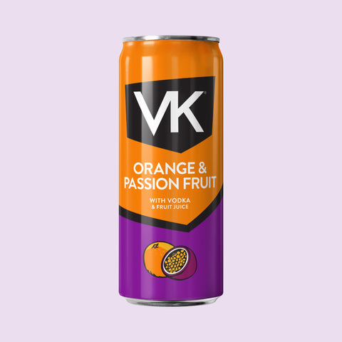 - VK Orange & Passionfruit mixes a juicy 2% of fruit juice with triple-distilled vodka for a smooth fruit flavouring and vodka mix.